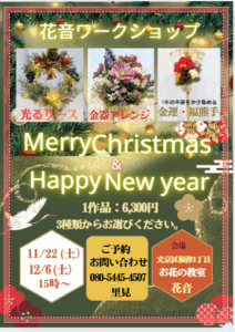 ハロウィン かぼちゃアレンジとお化けアレンジ10/11(土)15時~ 満席お礼 10/21(火)18時~ 空席有参加した皆様のお声から抜粋とにかく楽しい!初対面でも作品を創りながら仲良くなちゃった。お化けがマリーゴールド […]