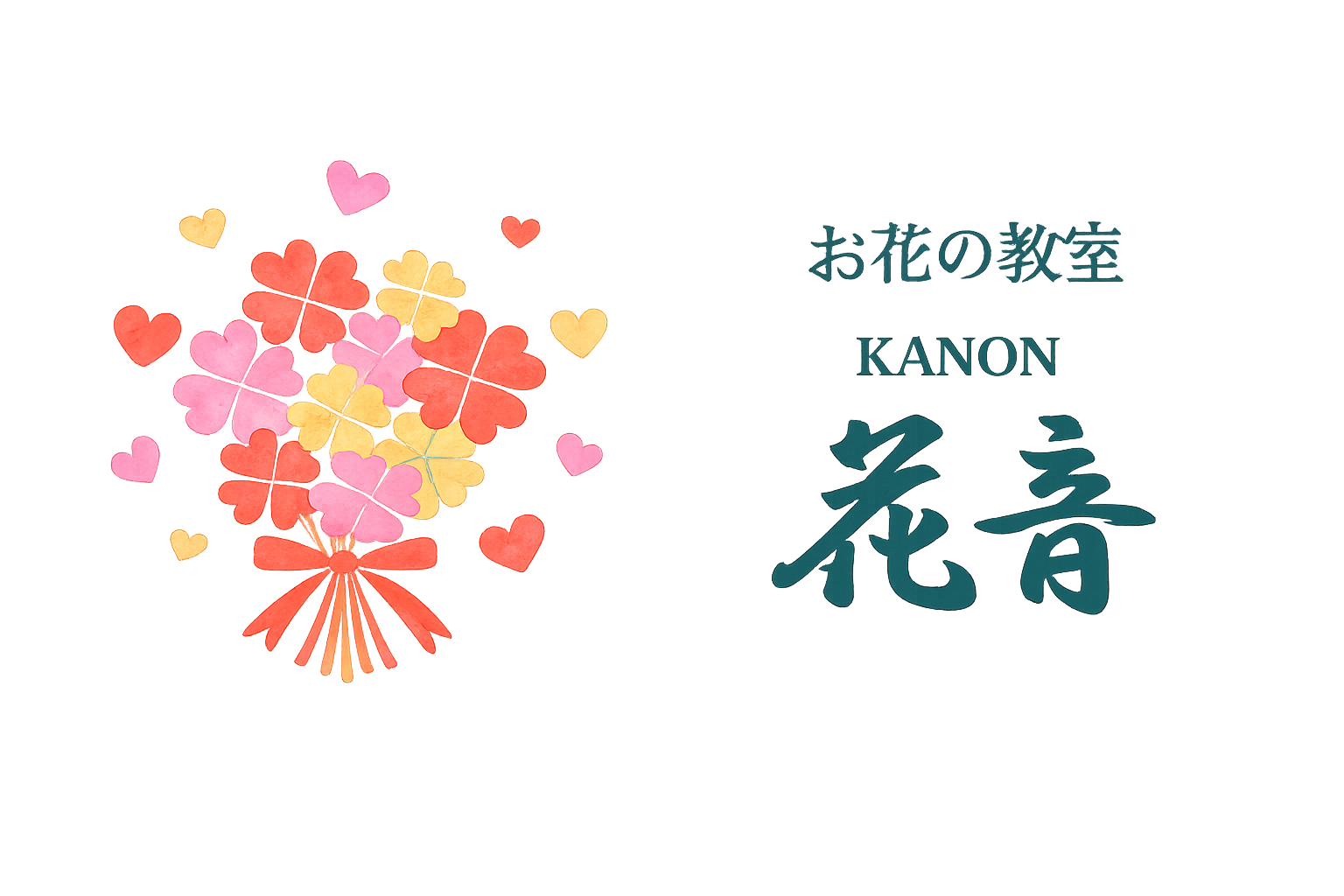 花を観賞することが、脳の活動に影響を与え、心理的、生理的に生じたストレス反応を緩和させること。そして、小川のせせらぎの優しい音、木の葉が風にそよぐ音などの「自然な音」にリラックス効果があること。好きな曲を聞く事で心が安定することもご存じの方が多いかと思います。花と音の融合空間の中で、日頃の心の緊張をほぐし、自分の作品作りを通して満足感とほっとする心の安定感、充実感に満たされる楽しい一時を過ごして頂きたい。そして心機一転、前向きに日々の生活をより豊かに過ごせますよう皆様の毎日追われるような暮らしの拠所として活用頂けたらと“花音”(カノン)と命名いたしました。